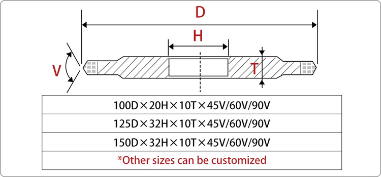 V groove double bevel angle 45° 60° 90° diamond grinding wheels for